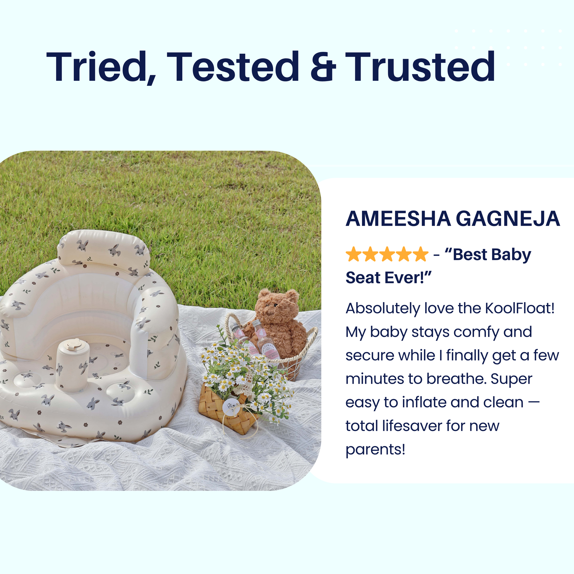 Yes! KoolFloat is water-friendly — perfect for supervised bath time or poolside fun. Just make sure an adult is always nearby while your baby enjoys the float.